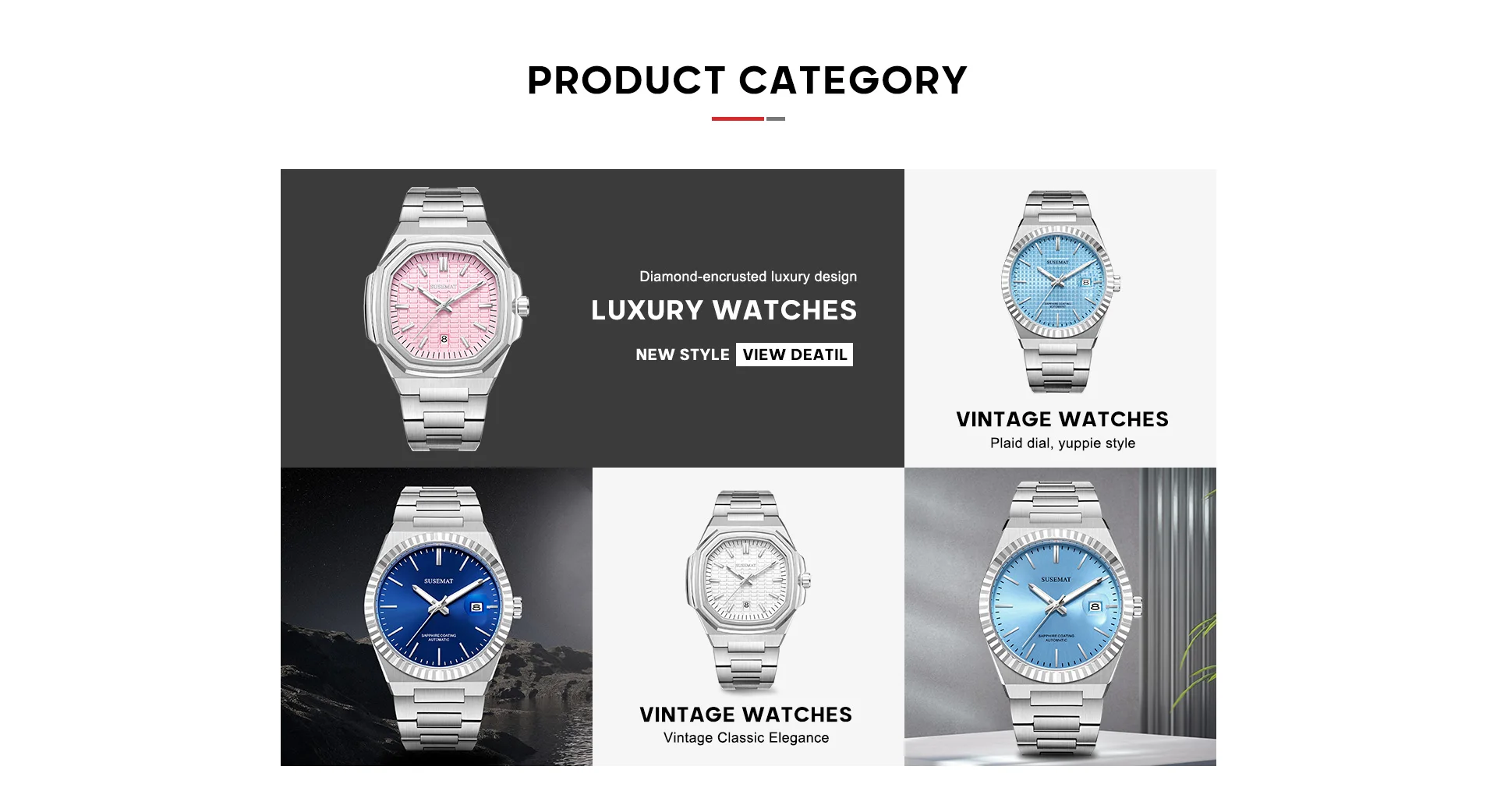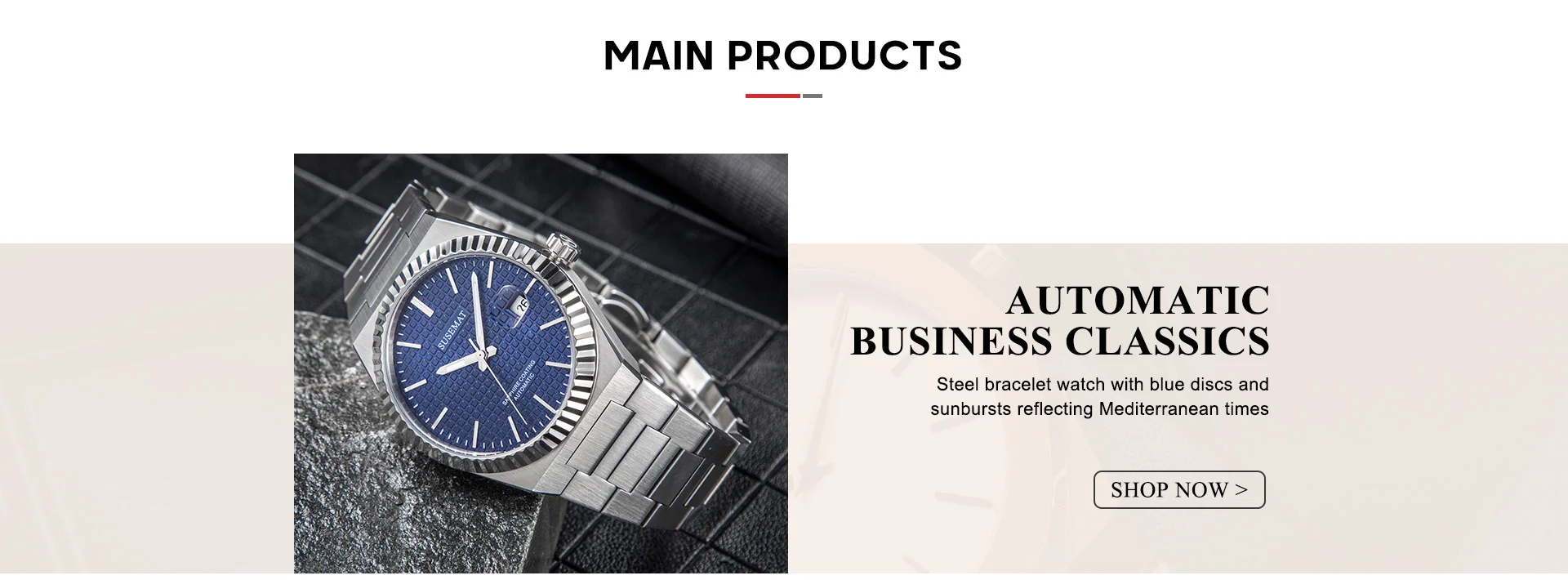 Productos principales:Relojes de cuarzo, relojes mecánicos, relojes de hombre, relojes de mujer, accesorios de reloj